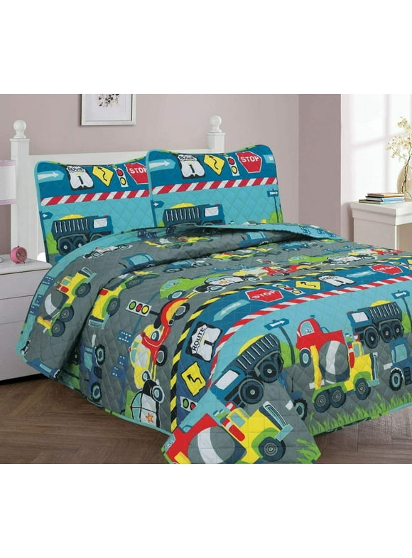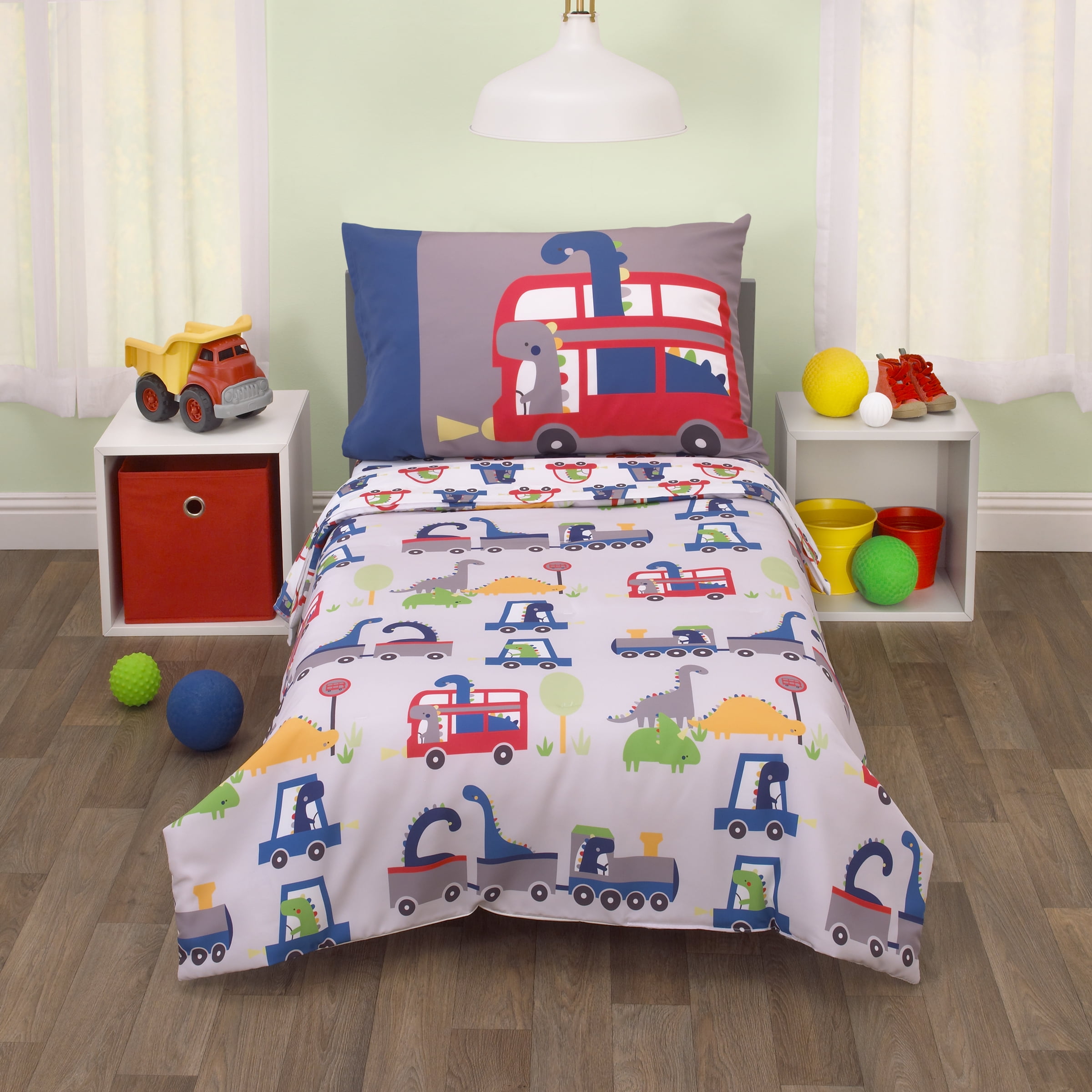 Parent S Choice 4 Piece Toddler Bedding Set Toddler Bed Gray Blue Dino Transportation Walmart Com